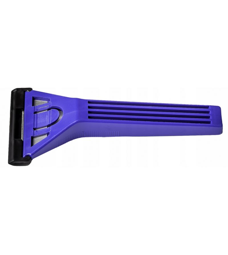 SKROBAK DO SZYB służy do dokładnego usuwania naszych naklejek z szyb. Wykonany z tworzywa. W części czołowej umieszczone wymienne ostrze trapezowe o szerokości 60 mm. Ostrze posiada zakładaną osłonę. Kolor skrobaka zależny jest od partii produktu (czerwony lub niebieski)