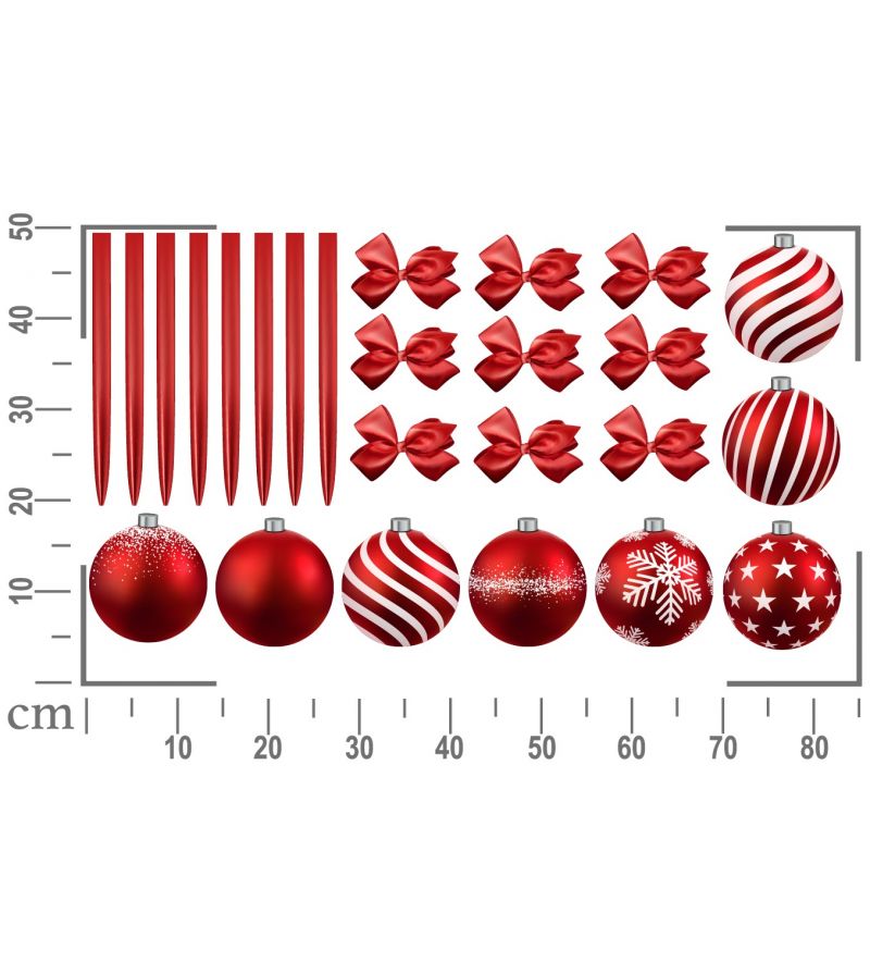 - rozmiar arkusza: 50x82cm, długość wstążek 30cm, wielkość bombki 14cm, wielkość kokardki 12cm