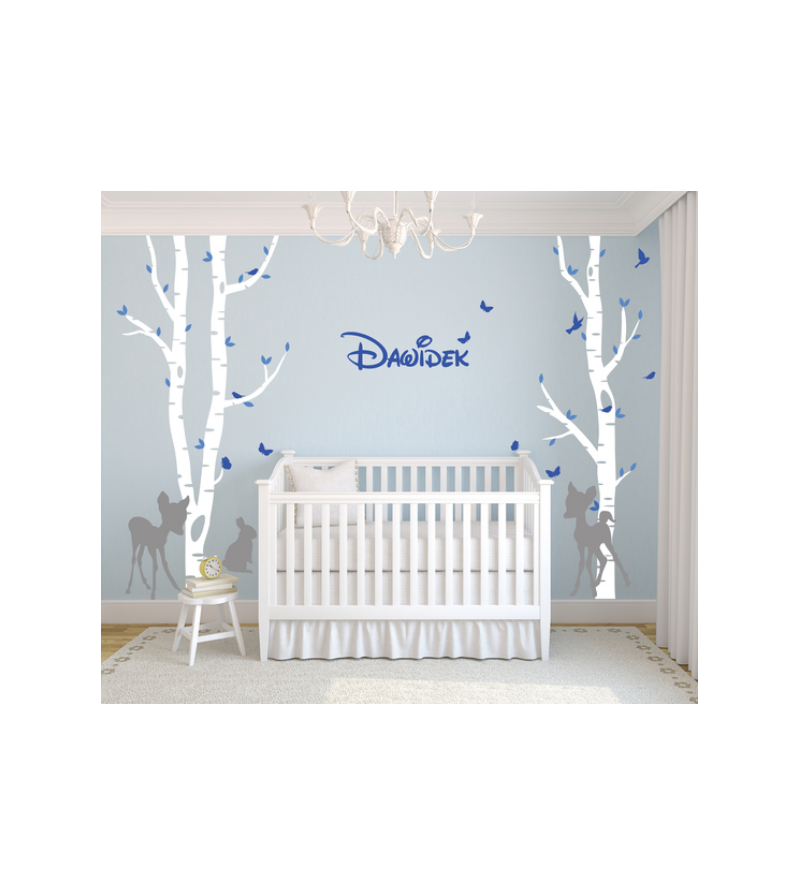 ROZMIARY: Drzewa (71x250cm; 114x250cm), Jelonki (46x80cm; 43x75cm), Królik (23x37cm), Listki Motyle Ptaszki (8-15cm).