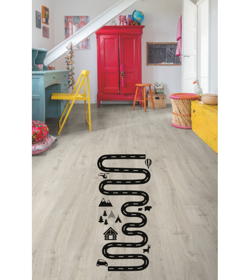 Naklejki można aplikować na wszystkie płaskie powierzchnie - podłogi z paneli, kafli, gumoleum, plastikowe/mdf skrzynie na zabawki itp. Nie można ich naklejać na podłogi pokryte np. dywano-wykładziną, dywanem, papierowe podłoża itp