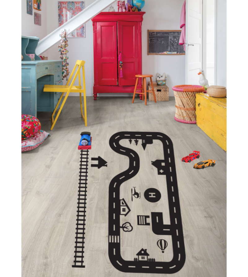 Naklejki można aplikować na wszystkie płaskie powierzchnie - podłogi z paneli, kafli, gumoleum, plastikowe/mdf skrzynie na zabawki itp. Nie można ich naklejać na podłogi pokryte np. dywano-wykładziną, dywanem, papierowe podłoża itp