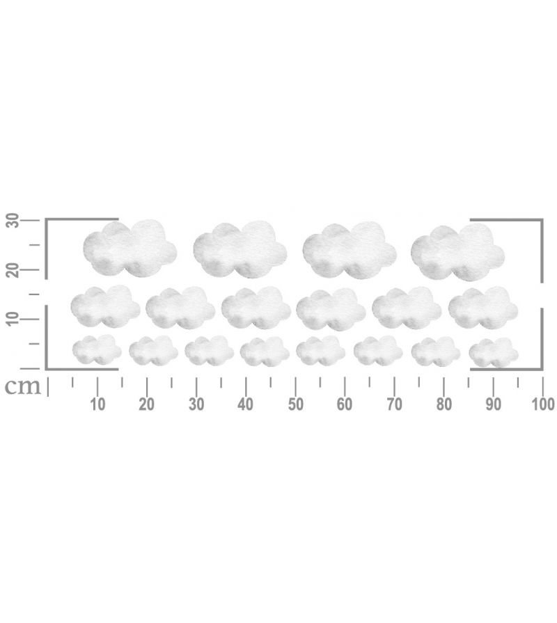 - rozmiary chmurek: 20cm (4szt), 15cm (6szt), 10cm (8szt)