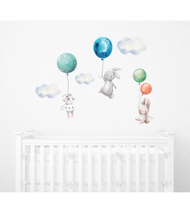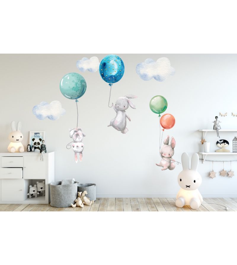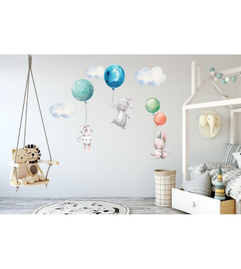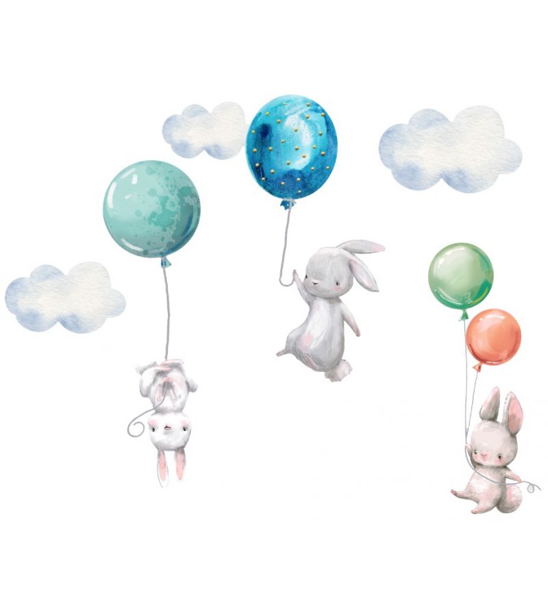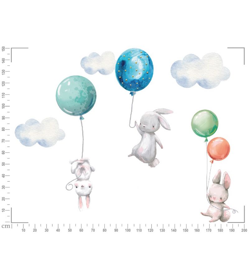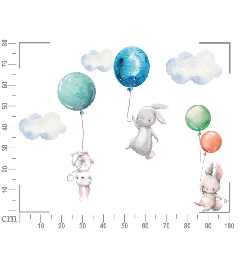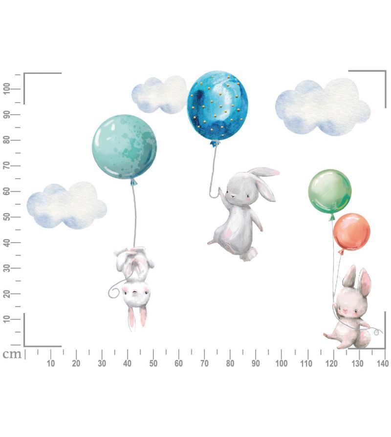 M - rozmiary króliczków wraz z balonem: 59cm, 53cm, 47cm . W komplecie 3szt chmurek (17cm, 22cm, 25cm).
